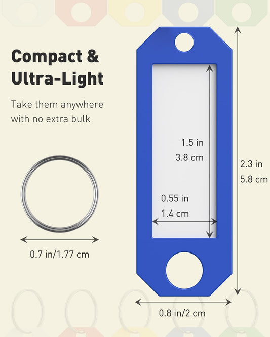 Uniclife 20 Pcs Key Tags, 5 Color Key Tags with Labels, 2.3" x 0.8" Key Labels for Keychain, Plastic Key Identifiers with Split Ring, Blank Key Ring Tags for House Office & School