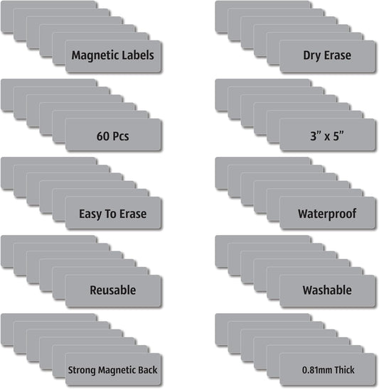 Magnetic Dry Erase Magnets Labels 3x1 inches, Reusable Name Tags, Organizing Schedules in Office/Classroom. Work on Fridge/White Board (Grey 60Pcs)