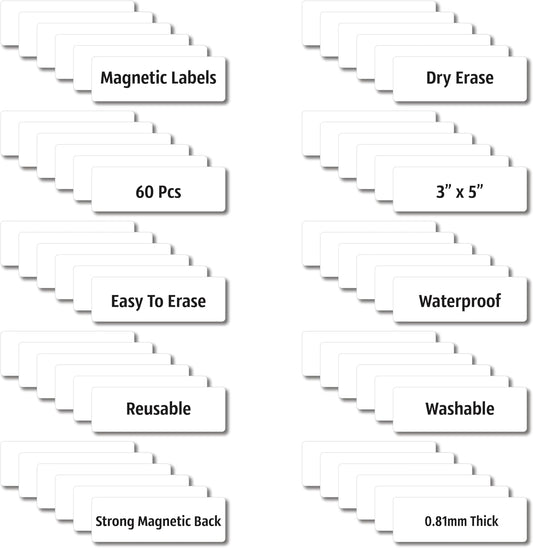 Magnetic Dry Erase Magnets Labels 3x1 inches, Reusable Name Tags, Organizing Schedules in Office/Classroom. Work on Fridge/White Board (White 60Pcs)