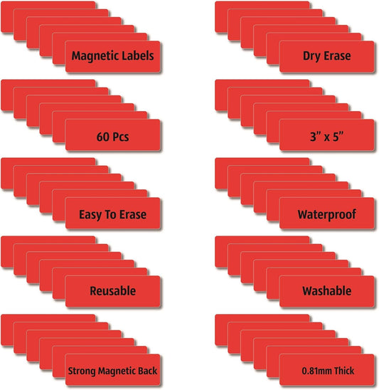 Magnetic Dry Erase Magnets Labels 3x1 inches, Reusable Name Tags, Organizing Schedules in Office/Classroom. Work on Fridge/White Board (Red 60Pcs)