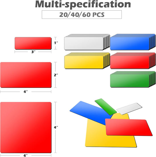 Dry Erase Magnetic Labels 3.7 x 2.8 in, Solid Colors, Medium Dry Erase Magnets, 20-Pack, Colored Erasable Write-On All-Purpose Labels, for Office, Education, Home, Whiteboard