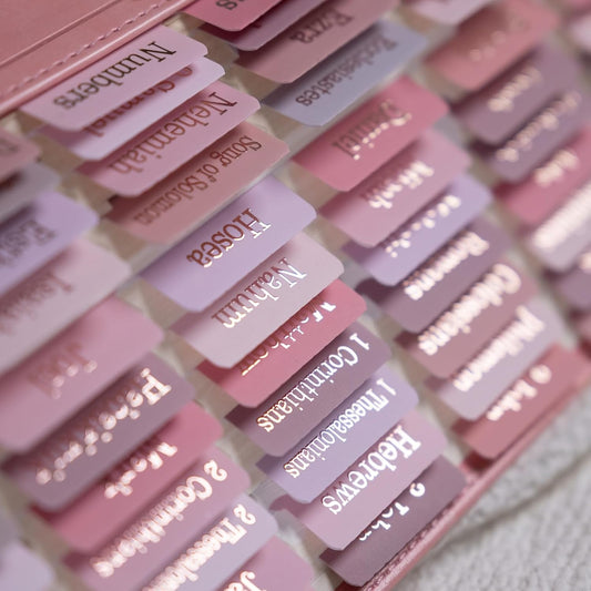 UPAFEXXI-Laminated Bible Tabs (Rose Gold Foil Embossed Lettering), Bible Tabs for Women and Men, Reposition Large Print Stickers, Easy to Read and Apply, 80 Chapters Labels for Easy Navigation(Pink)