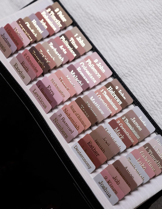 UPAFEXXI-Laminated Bible Tabs for Women and Men (Gold Foil Embossed Lettering) Reposition Large Print tabs, Easy to Read and Apply, 80 Bible Chapters Labels for Easy Navigation(Earth Tone Theme)