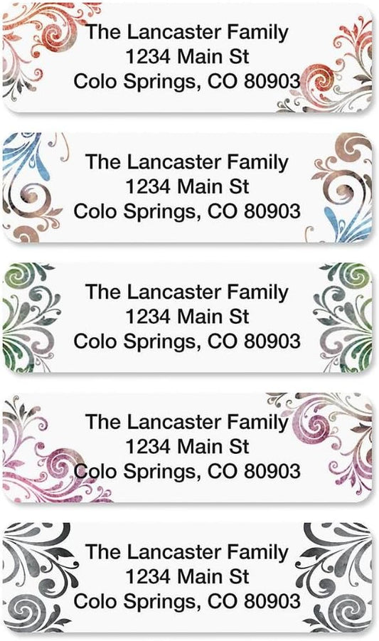 Colorful Images Elegant Swirl Rolled Personalized Return Address Mailing Labels with Dispenser, Customize with Name & Shipping Address, 500 ¾” x 2½” Self Adhesive, Easy Peel Label Roll