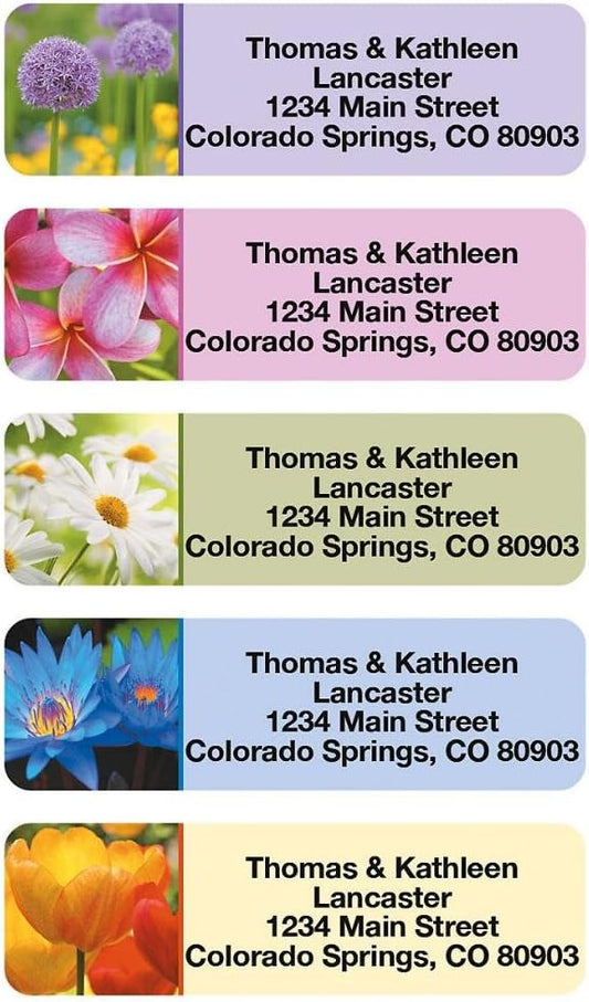 Colorful Images Flower Garden Rolled Personalized Return Address Mailing Labels with Dispenser, Customize with Name & Shipping Address, 250 ¾” x 2½” Self Adhesive, Easy Peel Label Roll