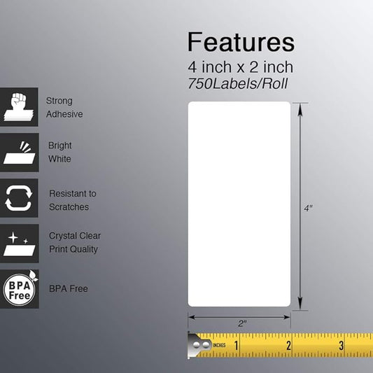BETCKEY - 4" x 2" (102 mm x 51 mm) Barcode Shipping & Multipurpose Labels Compatible with Zebra & Rollo Label Printer,Premium Adhesive & Perforated [16 Rolls, 12000 Labels]