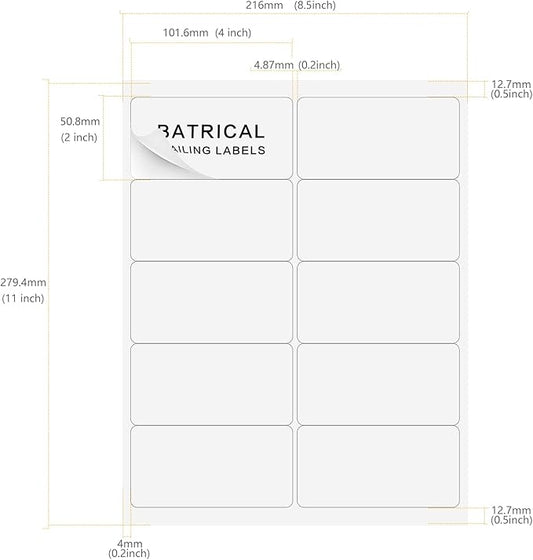 2"×4" Shipping Labels 500 Labels Sticker Paper for Laser/Ink Jet Printer mailing Labels 8.5"*11" White 10 per Sheet