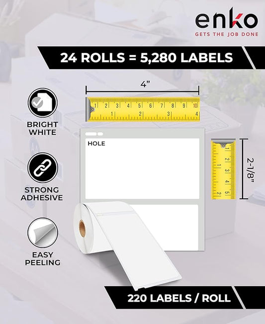 enKo (24 Rolls, 5280 Labels) Address & Shipping Labels 30323 (2-1/8 x 4") Compatible for Dymo LabelWriter