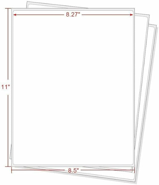 RBHK Sticker Paper, 8.5" x 11" Full Sheet Label Stickers Paper for Laser & Inkjet Printers (500 Sheets, 500 Labels)