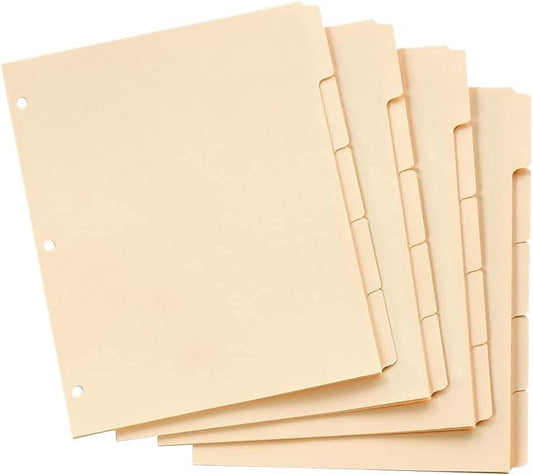 Oxford Blank Write-On Binder Dividers, 5-Tab, 1/5 Cut, 3-Hole Punched, Letter Size, Manila, 20 Sets Per Box (13V) - Cream