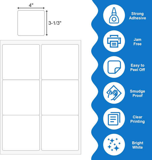 FungLam Printable Sticker Paper, 3-1/3" x 4" Shipping Address Labels 600 Blank Mailing Labels for Laser & Inkjet Printers, 6 per Page Label Stickers, 100 Sheets