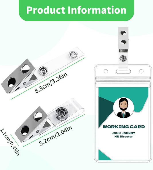 400 Pack Metal Badge Clips Double Hole ID Badge Clips with Clear PVC Straps for Name Tag ID Cards and Badge Holders Work Office Supplies