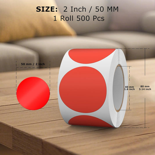 500 PCS Round Stickers 2 Inch Vinyl Red Dot Sticker Removable Writable Color Coding Circle Colored Labels for Office Inventory Garage Yard Sale Tag