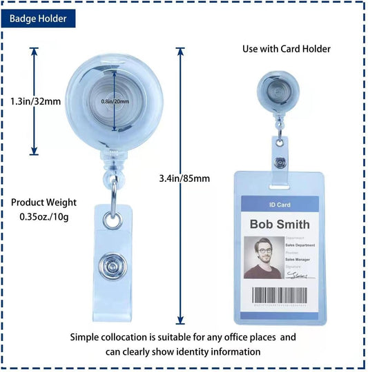 Badge Reels Retractable Badge Holder with Clip, Id Clips for Badges, Id Badge Reel, Retractable Id Badge Clip with Clear Vinyl Strap & Alligator Swivel, No Twist Dispenser (Clear)