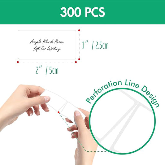 300 Removable Blank Food Labels, Water/Oil/Tear Resistant with Perforation Line for Freezer Food Containers Jars Pantry Organization (Each Measures 1” x 2”)