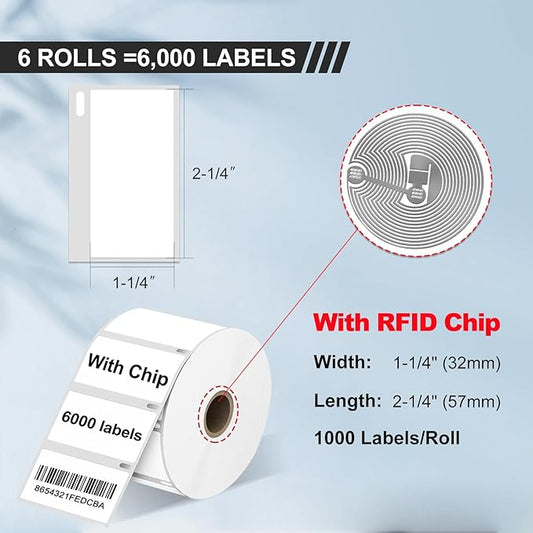 RGiNK for DYMO 550 Labels (30334 with RFID Chip) Multipurpose Barcode Labels (2-1/4" x 1-1/4"), Perforated, Compatible with DYMO Labelwriter 450 4XL 550&5XL 550 Turbo Printers [6 Rolls, 6000 Tags]