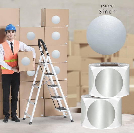 PARLAIM 3 X 3 inch Color Code Dot Stickers, 500pcs 3" Silver Round Color Coding Circle Labels per Roll in Dispenser Box for Inventory Storage Moving Box