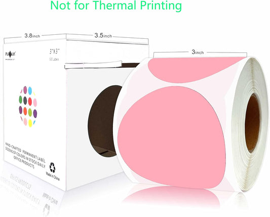 PARLAIM 3 Inch Round Color-Code Dot Stickers, 500 Color Coding Circle Labels per Roll Dispenser Box for Inventory, Pink