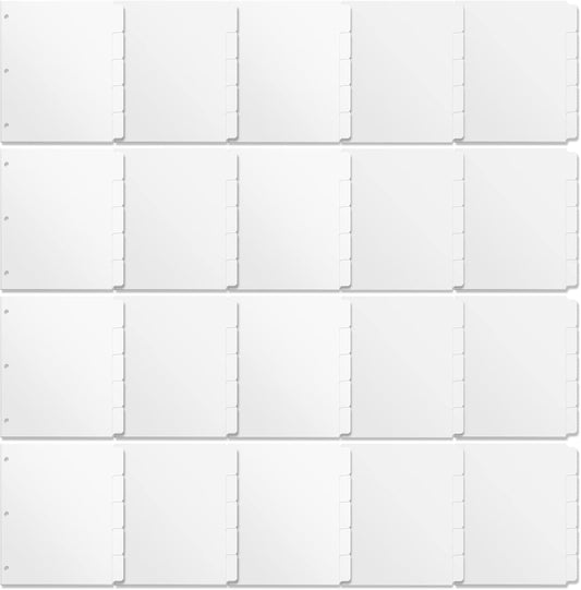 3 Ring Binder Dividers with 5 Tabs, Write & Erase Plastic Binder Dividers Durable 3 Hole Punch Dividers Letter-Size 1/5 Cut Big Tabs Dividers, 20 Set, 100 Dividers Total
