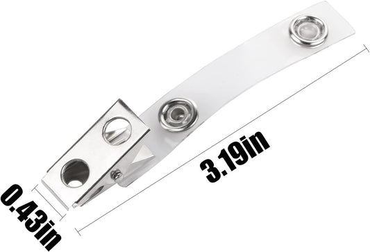 CABAX 30 Pcs Double Hole Metal Badge Clips with PVC Straps, ID Strap Clip Adapter ID Badge Clips for Badge Holders,Office,School, Clear