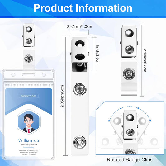 100Pcs Premium Metal Badge Clips with Clear PCV Straps, for ID Cards, Badge Holders, Name Tags, Work Badges