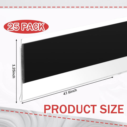 Fainne 25 Pcs 1. 25 Inch Magnetic Shelf Label Strip Holders for Metal Racks and Shelves, Clear Wire Shelf Price Tag Holder Installed in Supermarkets, Shops, Convenience Stores, 48 Inches Long
