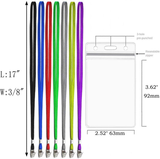 Bird Fiy® 50 Pack Lanyards with Bulldog Clip and 50 Pack Waterproof Clear Plastic Vertical Name Tag Badge ID Card Holders(Blue)