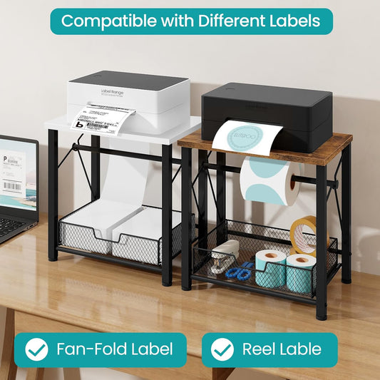 ELITEROO Label Holder for Rolls and Fanfold Labels, Wood Thermal Label Holder, Shipping Label Stand for Thermal Printer, Desktop Accessories Supplies for Home, Office, Small Business, White