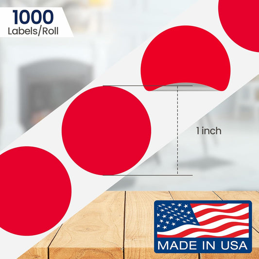 Perco Red 1-Inch Round Circle Dot Sticker Labels with Removable Adhesive – 1,000 Labels per Roll – Versatile, Vibrant Colors, Reliable Hold, No Residue, Perforated for Convenient Use – Made in USA