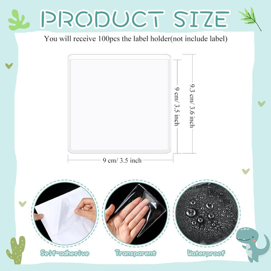 Jeyiour 100 Pcs Label Holders Adhesive Nameplate Pockets Storage Bin Labels Index Card Holder Shelf Plastic Peel Stick for Classroom Supermarket Bookshelf Library Student Box Drawer (3.5 x 3.5 Inch)