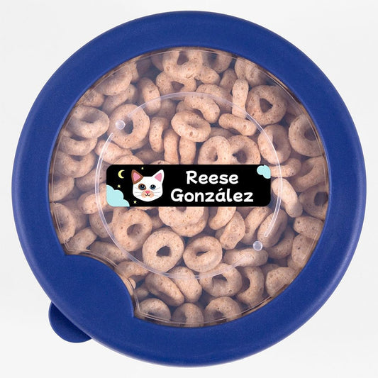 Name Bubbles - Custom Small Rectangle Name Labels for Kids (64 Labels) - Personalized Waterproof Name Stickers for Daycare, Lunch Boxes, Water Bottles, Shoes, School Supplies, & Camp (Cats)