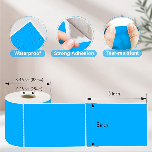 3 X 5 Inch Printable Rectangle Color Coding Labels, 300 Per Roll Adhesive Color Coding Stickers for Bar-Codes, Address, Small Business Labeling, Inventory, Fluorescent Blue