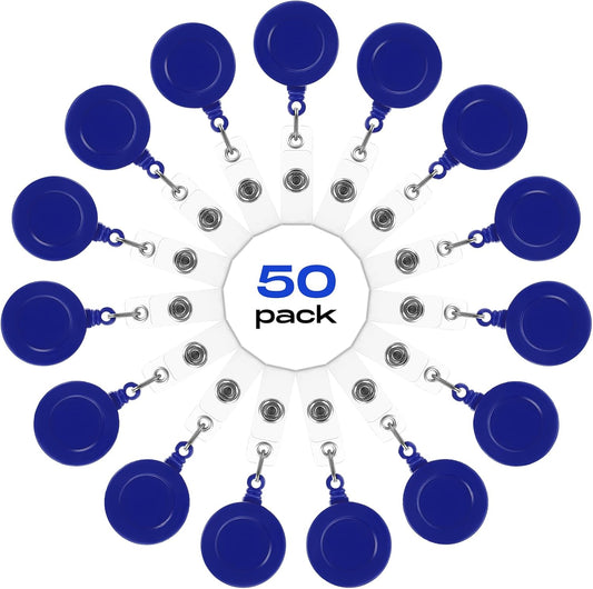 Zonon 50 Pieces Retractable Badge Holder Reels with Swivel Alligator Clip, ID Card Holder Name Badge Reel Clips for Students Teachers Office Workers (Navy Blue)