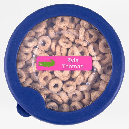 Name Bubbles - Custom Small Rectangle Name Labels for Kids (64 Labels) - Personalized Waterproof Name Stickers for Daycare, Lunch Boxes, Water Bottles, Shoes, School Supplies, & Camp (Alligator)