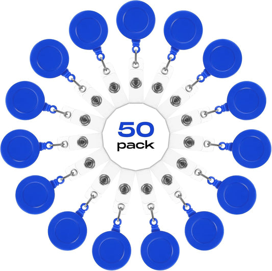 Zonon 50 Pieces Retractable Badge Holder Reels with Swivel Alligator Clip, ID Card Holder Name Badge Reel Clips for Students Teachers Office Workers (Blue)