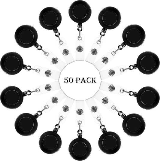 50 Pieces Retractable Badge Holder Reels with Swivel Alligator Clip, ID Card Holder Name Badge Reel Clips for Students Teachers Office Workers (Black)