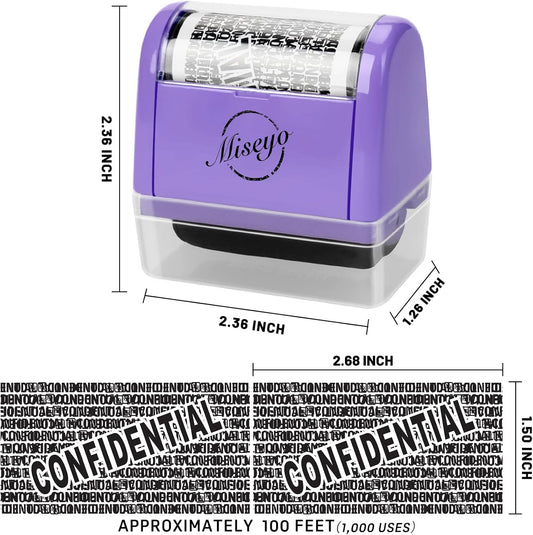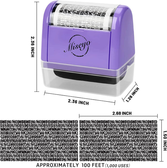 Miseyo Wide Identity Theft Protection Roller Stamp Set - Purple (3 Refill Ink Included)