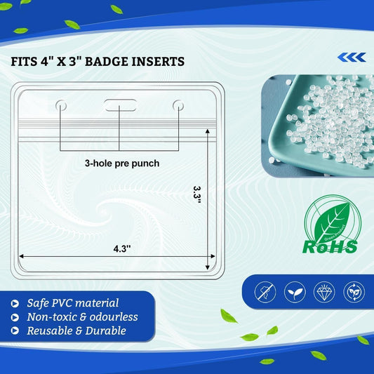 200 Pcs Clear Plastic Extra Thick Horizontal Card Holders, 4x3 Inch Sealable Waterproof Name Badge Bank ID Card Protector