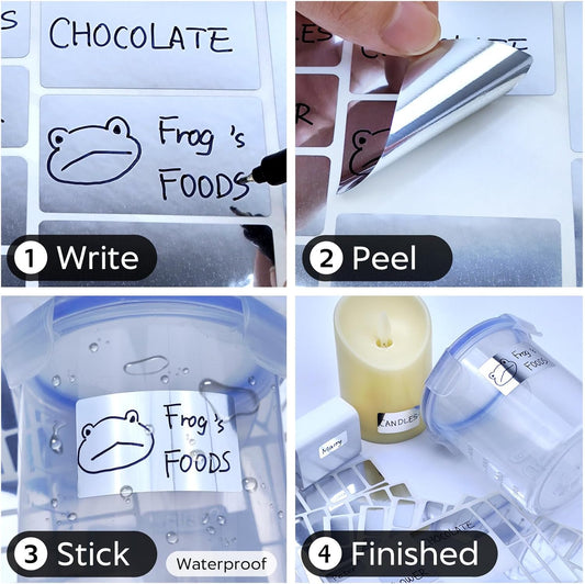 170Pcs Brightsilver Removable Labels for Jars,for Storage Bins,for Food Containers with 2 Liquid Chalk Marker(Brightsilver)