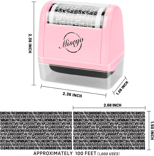 Miseyo Wide Identity Theft Protection Roller Stamp Set - Pink (3 Refill Ink Included)