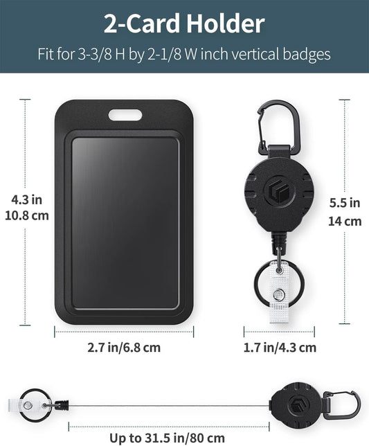 2 Pack Badge Reels Retractable with Key Rings, ID Badge Holder with 2 pcs Waterproof Extra Thick ID Card Holders, Alligator Clip (Black)