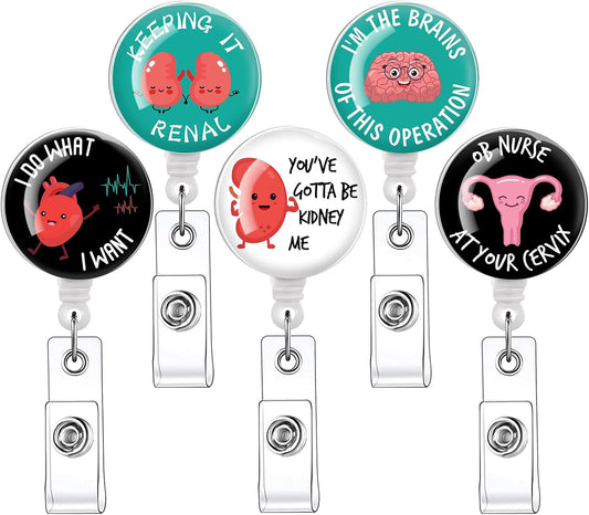 Cardiac Badge Holder Anatomy Funny Nurse Name Tag Holder Heart Retractable Reel ID Card Clip Pediatrics Nursing Badge Clips Medical Assistant for Doctor Student Teacher Office Clinic