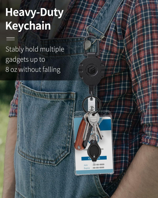 MNGARISTA Upgraded Heavy Duty Retractable Keychain with Belt Clip, 10 OZ Retraction, 31.5" Stainless Steel Cord, 3K Carbon Fiber ID Badge Reel with Badge Strap and Key Ring