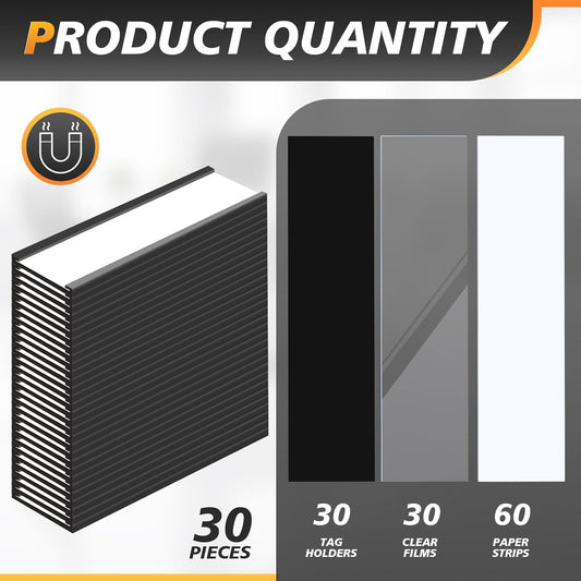 Eeoyu Magnetic Label Holders with Magnets Magnetic Data Card Holders with Clear Plastic Protectors for Metal Shelf, Whiteboard, Set of 30 (0.5 x 2 Inch)