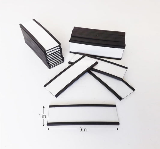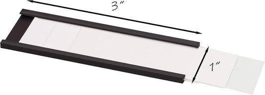 50 Pack C-Channel Magnetic Label Holders (1″ x 3″) with Paper Inserts & Clear Covers – Durable Magnetic Shelf & File Cabinet Labels for Metal Surfaces