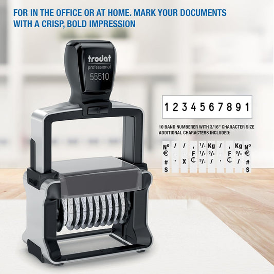 Trodat Numberer Stamp Professional 55510 – 10 Digits, Self Inking, 3/16" (5 mm) Characters, Black Ink