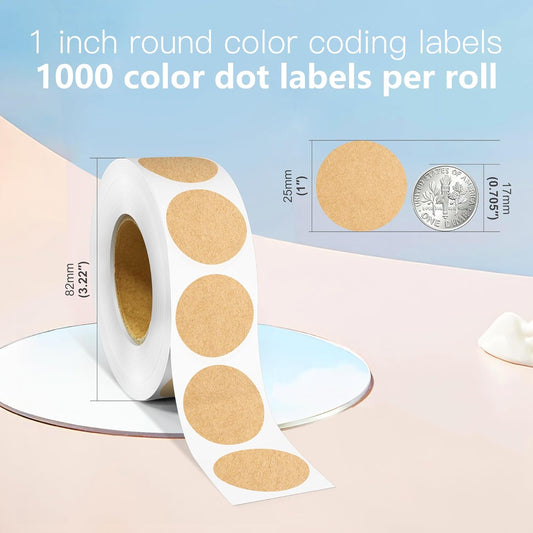 1 Inch Round Color Coding Labels, 1000 Dots Per Roll Kraft Brown Color Coded Dot Stickers, Round Color Dot Labels for Organizing, Filing, and Storage