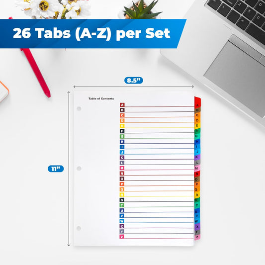 Alphabet Binder Dividers – 3 Sets of 26 A–Z Index Tabs for 3-Ring Binders, 8.5 x 11 in – Customizable Table of Contents, 3-Hole Punched – for School, Filing, Office Organization - 3 Pack