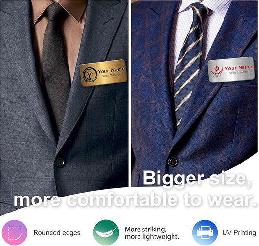 Magnetic Name Tags with Full Color Logo | Personalized Engraved Acrylic Name Badges with Pin or Adhesive Backing | Custom ID Tags | 3"x1.5"