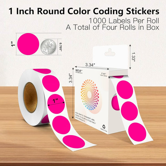 Fluorescent Pink 1 Inch Round Color Coding Labels with 4000 Dots, 4 Rolls - Bright Color Dot Stickers for File Folders, Inventory System - Highly Visible